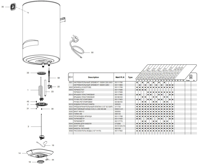 термостата и магниевого анода.