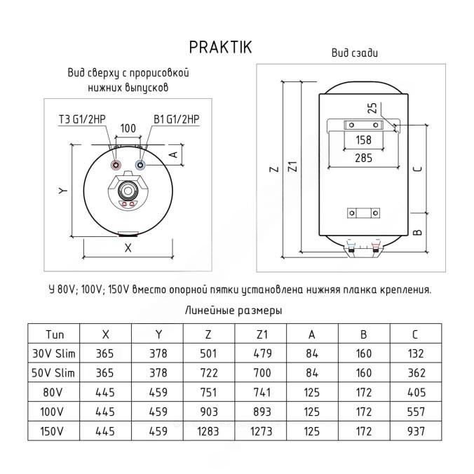 Водонагреватель электрический накопительный 100 л 2,5 кВт Praktik 100 V THERMEX ЭдЭ001641