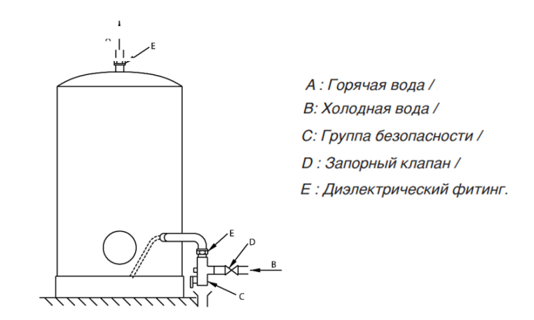 Монтаж водонагревателя ARI STAB 570 THER MO VS EU можно осуществлять только на полу в вертикальном положении – для этого в комплекте имеется заводская опора. В комплект поставки также входит предохранительный клапан, который устанавливается на входе холодной воды в водонагреватель и выполняет функции предотвращения возврата воды из водонагревателя при отсутствии воды в магистрали холодного водоснабжения и защиты внутреннего бака от избыточного давления.