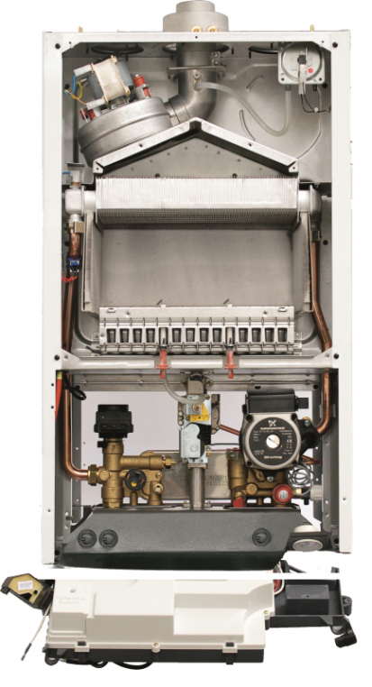 - Первичный медный теплообменник, покрытый специальным составом для защиты от коррозии