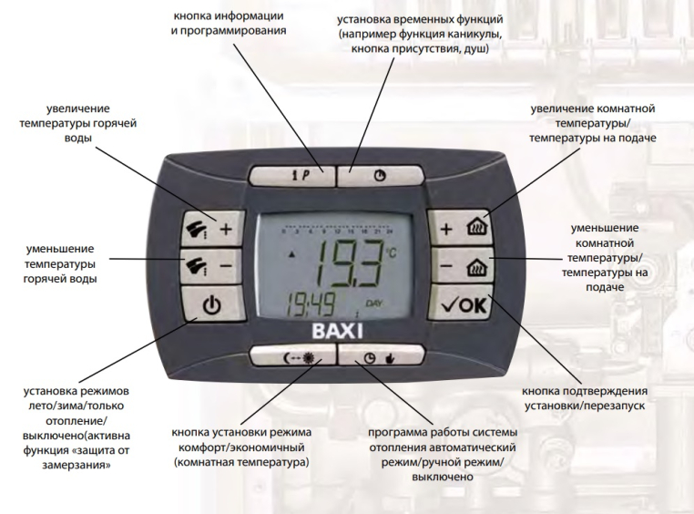 Газовый котел монтируется на стену, есть возможность установить панель управления в то место, в котором обладателю будет удобно управлять оборудованием. Ультрасовременная цифровая плата поставляется также в беспроводном варианте. Это оборудование третьего поколения со съемной цифровой панелью управления обеспечивает комфортную температуру в доме при любой погоде за окном без лишних хлопот. Гарантия качества от BAXI.