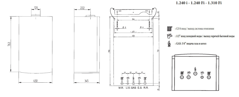 - Встроенный трехходовой клапан для бойлера (без сервопривода) в одноконтурных моделях.