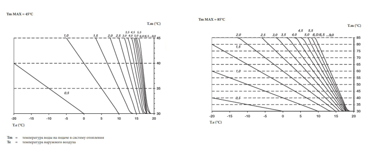 - Два диапазона регулирования температуры в системе отопления: 30-85°С и 30-45°С (режим «теплые полы»)