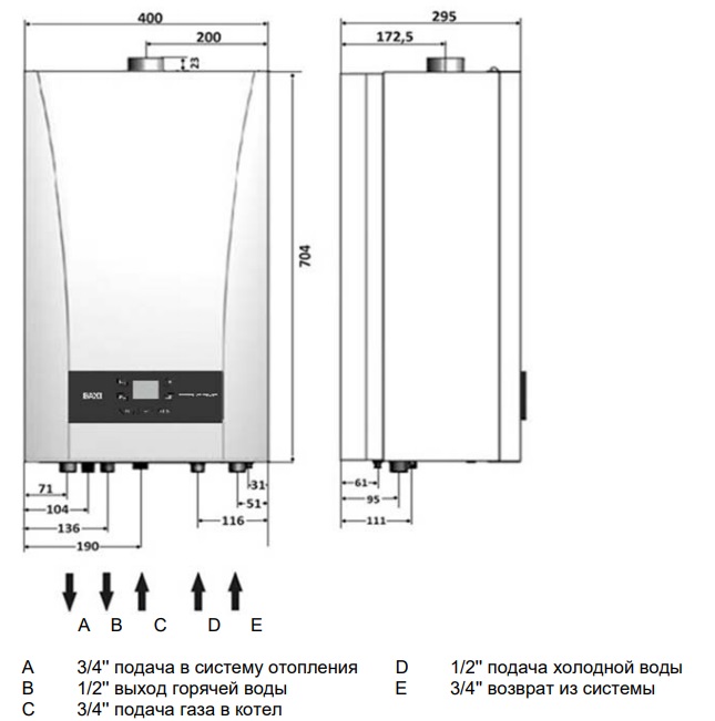 - Диаметр дымоотвод. труб (коакс./раздельных), мм: (60-100)/80