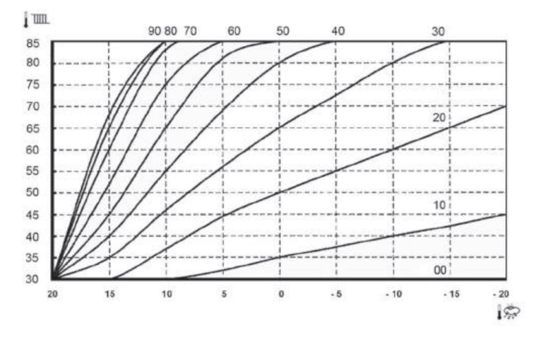 - Диапазон регулирования температуры в системе отопления 25-80°С