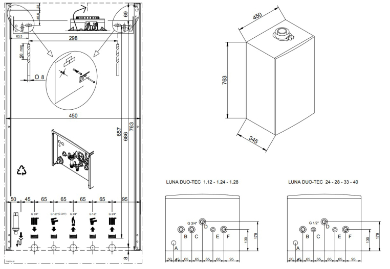В моделях серии LUNA Duo-tec E заложена способность котла адаптироваться под тип и качество газа, параметры дымохода, дымоход и другие условия. Все модели оснащены встроенным модуляционным насосом, который управляется электроникой котла и подстраивается под систему отопления, обеспечивая оптимальный температурный режим и экономию электроэнергии. Котлы серии LUNA Duo-tec E оснащены современной горелкой с полным предварительным смешением газвоздушной смеси и работают с коэффициентом модуляции мощности 1 к 7.