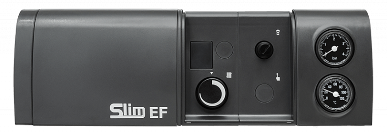 Если вам требуется энергонезависимый газовый котел, вам подойдут модели из серии SLIM EF, оснащенные атмосферной горелкой и изготовленные на основе чугуна. Линейка отличается особенностью обеспечения безопасности: если пламя погаснет, автоматически сработает закрытие газового клапана. Поэтому электроснабжение не обязательно, оборудование может функционировать на основе циркуляции теплоносителя. В этой линейке можно выбрать модель мощностью 22-61 кВт. Ее отличает дизайн, состоящий из серого корпуса с панелью управления черного цвета.