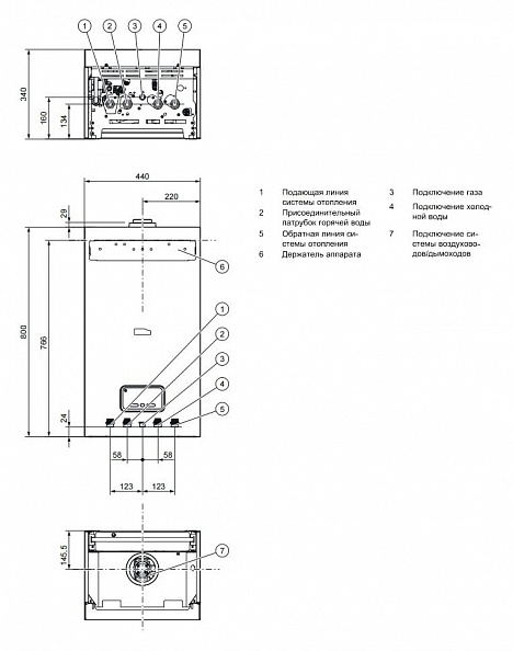 - Габаритные размеры, ШхВхГ, мм: 440 х 800 х 338