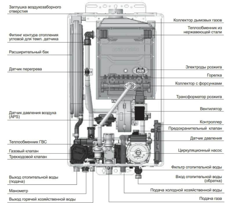- Настенный газовый двухконтурный котел с закрытой камерой сгорания