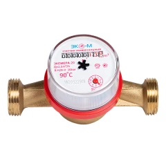 Счётчик г/в и х/в крыльчатый одноструйный Ду 15 Ру16 90С L=110мм резьба с обратным клапаном В/К ЭКОМЕРА Э-15У-110-СК