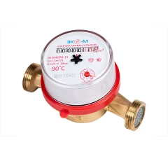 Счётчик г/в и х/в крыльчатый одноструйный Ду 15 Ру16 90С L=110мм резьба импульсный с обратным клапаном В/К ЭКОМЕРА Э-15УИ-110-СК