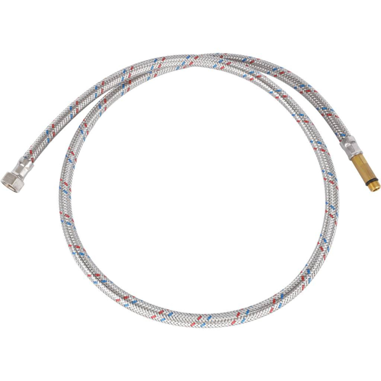 Гибкие подводки STOUT предназначены для присоединения санитарно-технического и бытового оборудования к транспортирующей воду трубопроводной сети. Подводки со штуцером М10 служат для непосредственного подключения к смесителям системы хозяйственно-питьевого водопровода. Гибкая подводка представляет собой шланг из нетоксичной резины в оплетке из нержавеющей стали. По концам подводки напрессованы ниппели с наружной резьбой или с накидной гайкой, укомплектованной прокладкой.