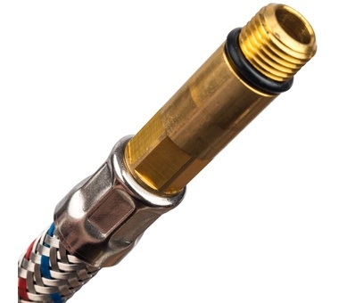Гибкие подводки STOUT предназначены для присоединения санитарно-технического и бытового оборудования к транспортирующей воду трубопроводной сети. Подводки со штуцером М10 служат для непосредственного подключения к смесителям системы хозяйственно-питьевого водопровода. Гибкая подводка представляет собой шланг из нетоксичной резины в оплетке из нержавеющей стали. По концам подводки напрессованы ниппели с наружной резьбой или с накидной гайкой, укомплектованной прокладкой.