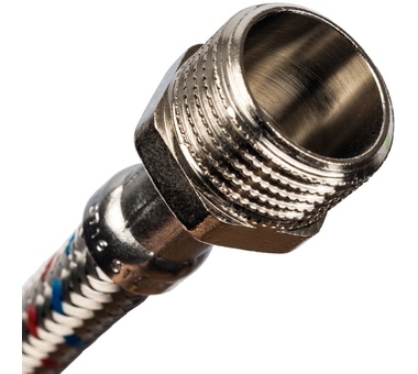 Гибкая подводка представляет собой шланг из нетоксичной резины в оплетке из нержавеющей стали. По концам подводки напрессованы ниппели с наружной резьбой или с накидной гайкой, укомплектованной прокладкой.