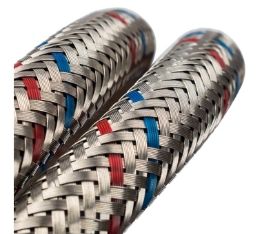 Гибкие подводки STOUT предназначены для присоединения санитарно-технического и бытового оборудования к транспортирующей воду трубопроводной сети. Подводки со штуцером М10 служат для непосредственного подключения к смесителям системы хозяйственно-питьевого водопровода. Гибкая подводка представляет собой шланг из нетоксичной резины в оплетке из нержавеющей стали. По концам подводки напрессованы ниппели с наружной резьбой или с накидной гайкой, укомплектованной прокладкой.
