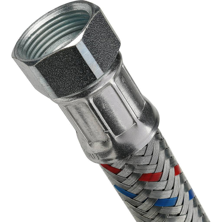 Гибкие подводки STOUT предназначены для присоединения санитарно-технического и бытового оборудования к транспортирующей воду трубопроводной сети. Подводки служат для непосредственного подключения к смесителям системы хозяйственно-питьевого водопровода. Гибкая подводка представляет собой шланг из нетоксичной резины в оплетке из нержавеющей стали. По концам подводки напрессованы ниппели с наружной резьбой или с накидной гайкой, укомплектованной прокладкой.