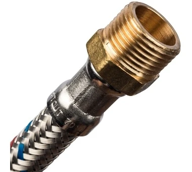 Гибкие подводки STOUT предназначены для присоединения санитарно-технического и бытового оборудования к транспортирующей воду трубопроводной сети. Гибкая подводка представляет собой шланг из нетоксичной резины в оплетке из нержавеющей стали. По концам подводки напрессованы ниппели с наружной резьбой или с накидной гайкой, укомплектованной прокладкой.