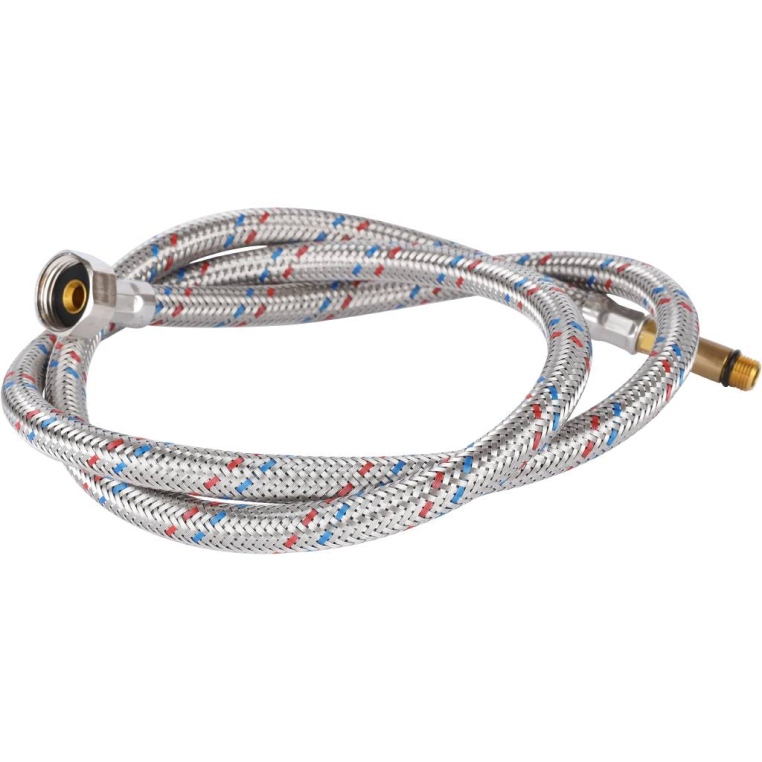 Гибкие подводки STOUT предназначены для присоединения санитарно-технического и бытового оборудования к транспортирующей воду трубопроводной сети. Подводки со штуцером М10 служат для непосредственного подключения к смесителям системы хозяйственно-питьевого водопровода. Гибкая подводка представляет собой шланг из нетоксичной резины в оплетке из нержавеющей стали. По концам подводки напрессованы ниппели с наружной резьбой или с накидной гайкой, укомплектованной прокладкой.