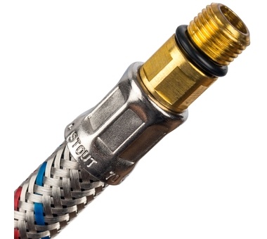 Гибкие подводки STOUT предназначены для присоединения санитарно-технического и бытового оборудования к транспортирующей воду трубопроводной сети. Подводки со штуцером М10 служат для непосредственного подключения к смесителям системы хозяйственно-питьевого водопровода. Гибкая подводка представляет собой шланг из нетоксичной резины в оплетке из нержавеющей стали. По концам подводки напрессованы ниппели с наружной резьбой или с накидной гайкой, укомплектованной прокладкой.