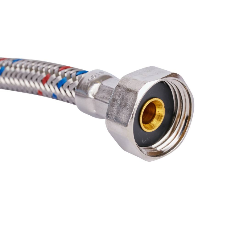Гибкие подводки STOUT предназначены для присоединения санитарно-технического и бытового оборудования к транспортирующей воду трубопроводной сети. Подводки со штуцером М10 служат для непосредственного подключения к смесителям системы хозяйственно-питьевого водопровода. Гибкая подводка представляет собой шланг из нетоксичной резины в оплетке из нержавеющей стали. По концам подводки напрессованы ниппели с наружной резьбой или с накидной гайкой, укомплектованной прокладкой.