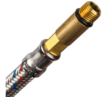 Гибкие подводки STOUT предназначены для присоединения санитарно-технического и бытового оборудования к транспортирующей воду трубопроводной сети. Подводки со штуцером М10 служат для непосредственного подключения к смесителям системы хозяйственно-питьевого водопровода. Гибкая подводка представляет собой шланг из нетоксичной резины в оплетке из нержавеющей стали. По концам подводки напрессованы ниппели с наружной резьбой или с накидной гайкой, укомплектованной прокладкой.