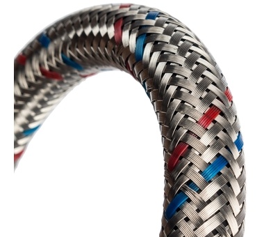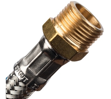 Гибкие подводки STOUT предназначены для присоединения санитарно-технического и бытового оборудования к транспортирующей воду трубопроводной сети. Гибкая подводка представляет собой шланг из нетоксичной резины в оплетке из нержавеющей стали. По концам подводки напрессованы ниппели с наружной резьбой или с накидной гайкой, укомплектованной прокладкой.
