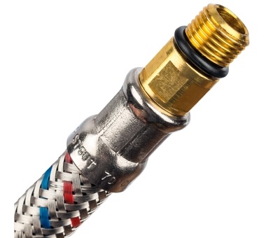 Гибкие подводки STOUT предназначены для присоединения санитарно-технического и бытового оборудования к транспортирующей воду трубопроводной сети. Подводки со штуцером М10 служат для непосредственного подключения к смесителям системы хозяйственно-питьевого водопровода. Гибкая подводка представляет собой шланг из нетоксичной резины в оплетке из нержавеющей стали. По концам подводки напрессованы ниппели с наружной резьбой или с накидной гайкой, укомплектованной прокладкой.
