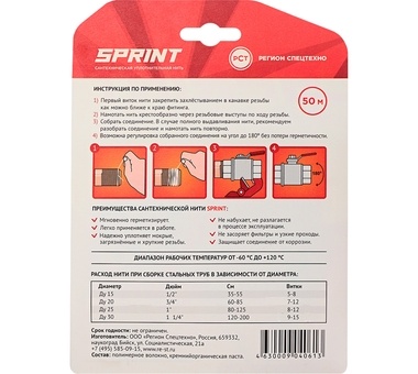 Сантехническая уплотнительная нить «SPRINT», 50 м, бокс (TM-040061)