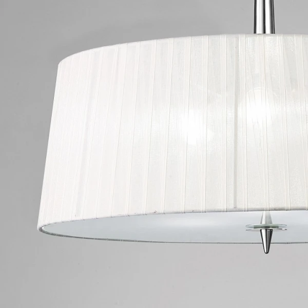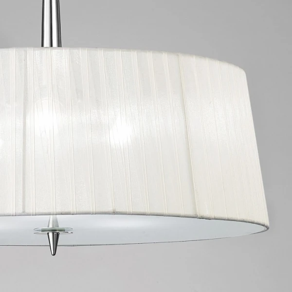 Изделие 4639 от испанского бренда Mantra относится к коллекции Loewe и отлично подойдет для установки на потолок спальни, оформленной в дизайнерском стиле. Подвесной светильник Mantra Loewe 4639 с плафонами-конусами осветит помещение площадью 12 кв.м. Для устройства рекомендуется использовать энергосберегающие лампы с цоколем E14 и мощностью 20 W. Основными материалами для производства используется текстиль, металл и органза и может использоваться для натяжного потолка. Преимущественно представляется в цвете Белый и Серебристо-стальной.