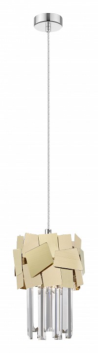 Подвесной светильник с небольшой потолочной чашей цвета хром, из металла цвета полированного (матового) золота с хрустальными подвесками. D190mm x H540-1840mm, 1хЕ14