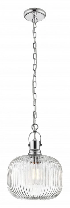 Подвес из металла цвета хром с плафоном из рифленого прозрачного стекла. D250mm, H490-1870mm 1хE27