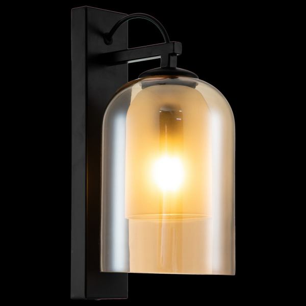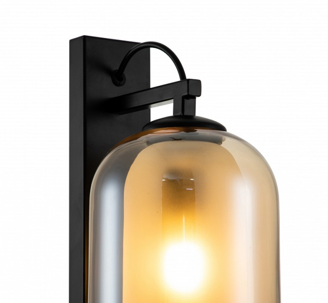 Форма плафона колокол прямой, цвет плафона коньячный, янтарный, цвет арматуры черный. Лампы в комплекте: отсутствуют. Светильник имеет слабую защиту от влаги и пыли — IP20 и предназначен для использования в домашних интерьерах с умеренной влажностью.