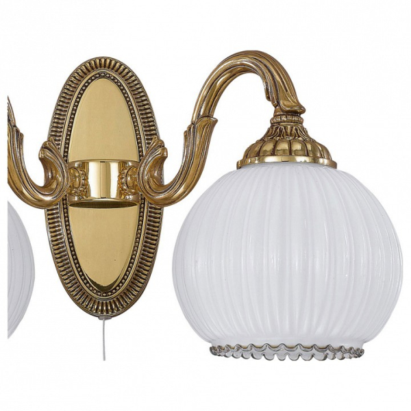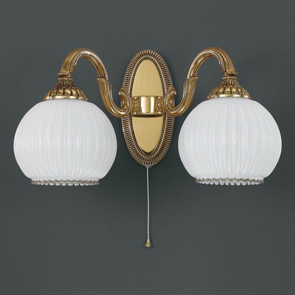Бра A 9300/2 из коллекции 9300 от итальянской фабрики Reccagni Angelo украсит гостиную, кабинет, спальню в классическом стиле. Материал изделия – латунь, цвет глянцевый, рельефный золото французское. Бра имеет 2 плафона из стекла с цоколем 2xE27 общей мощностью 120W. Технические особенности модели: способ крепления светильника на стене – на монтажной пластине, светильник предназначен для использования со скрытой проводкой. Габариты: ширина – 37 см, высота – 23 см, выступ – 21 см.