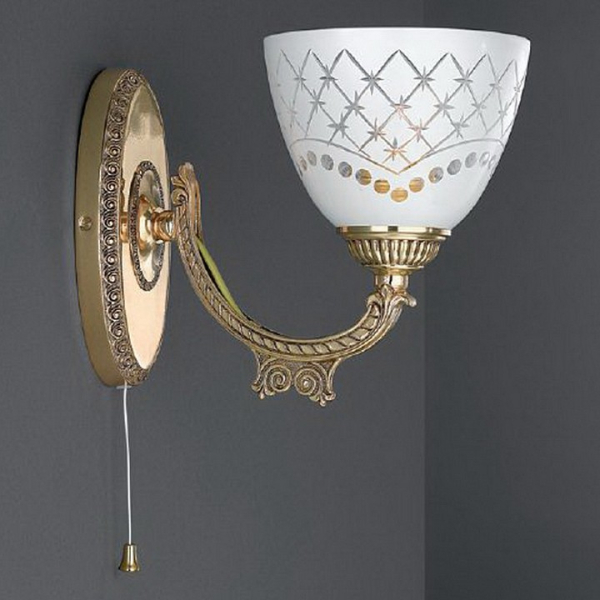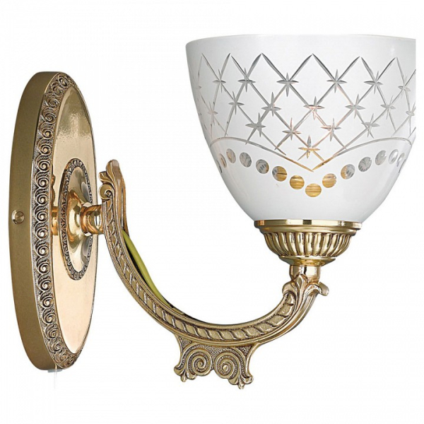 Бра A 7152/1 из коллекции 7152 от итальянской фабрики Reccagni Angelo украсит гостиную, кабинет, спальню в стиле флористика. Материал изделия – латунь, цвет глянцевое золото французское. Бра имеет 1 плафон из стекла с цоколем E27 общей мощностью 60W. Технические особенности модели: способ крепления светильника на стене – на монтажной пластине, светильник предназначен для использования со скрытой проводкой. Габариты: ширина – 20 см, высота – 18 см, выступ – 24 см.