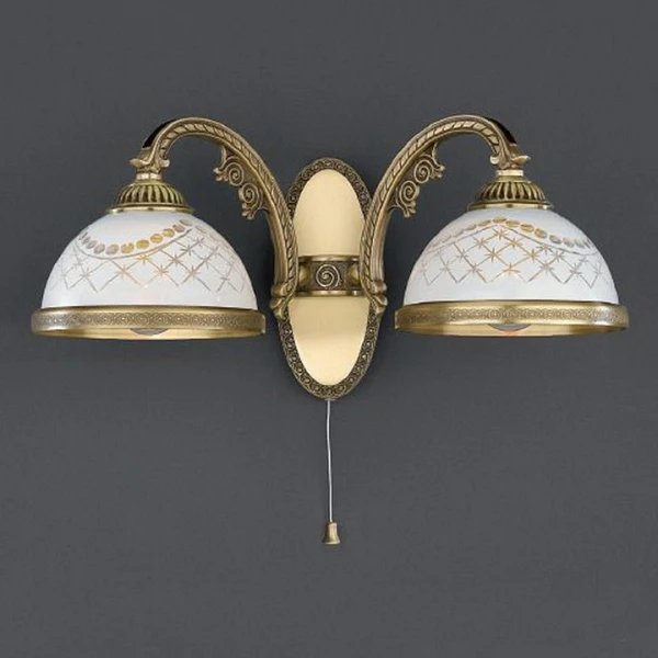 Бра A 7002/2 из коллекции 7002 от итальянской фабрики Reccagni Angelo украсит гостиную, кабинет, спальню в стиле флористика. Материал изделия – латунь, цвет матовый, рельефный бронза состаренная. Бра имеет 2 плафона из стекла с цоколем 2xE27 общей мощностью 120W. Технические особенности модели: способ крепления светильника на стене – на монтажной пластине, светильник предназначен для использования со скрытой проводкой. Габариты: ширина – 38 см, высота – 18 см, выступ – 21 см.
