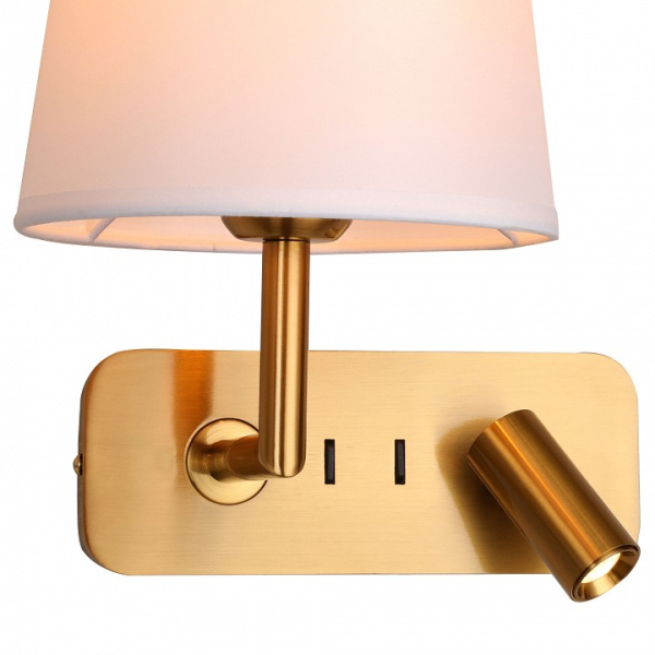 Изделие 2843-1W со встроенным выключателем от немецкого бренда Favourite относится к коллекции Bingo и отлично подойдет для настенной установки спальни, оформленной в современном стиле. Бра Favourite Bingo 2843-1W с плафонами-конусами осветит помещение площадью 3.3 кв. м. Для устройства рекомендуется использовать лампы накаливания с цоколем E27 и мощностью 60 W. Основными материалами для производства используется текстиль, металл и ткань. Преимущественно представляется в цвете Бежевый и Латунный.