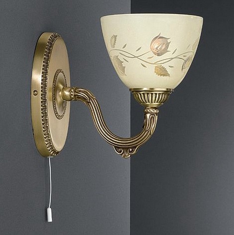 Бра A 6258/1 из коллекции 6258 от итальянской фабрики Reccagni Angelo украсит гостиную, кабинет, спальню в стиле флористика. Материал изделия – латунь, цвет матовая бронза состаренная. Бра имеет 1 плафон из стекла с цоколем E27 общей мощностью 60W. Технические особенности модели: способ крепления светильника на стене – на монтажной пластине, светильник предназначен для использования со скрытой проводкой. Габариты: высота – 18 см, выступ – 24 см.