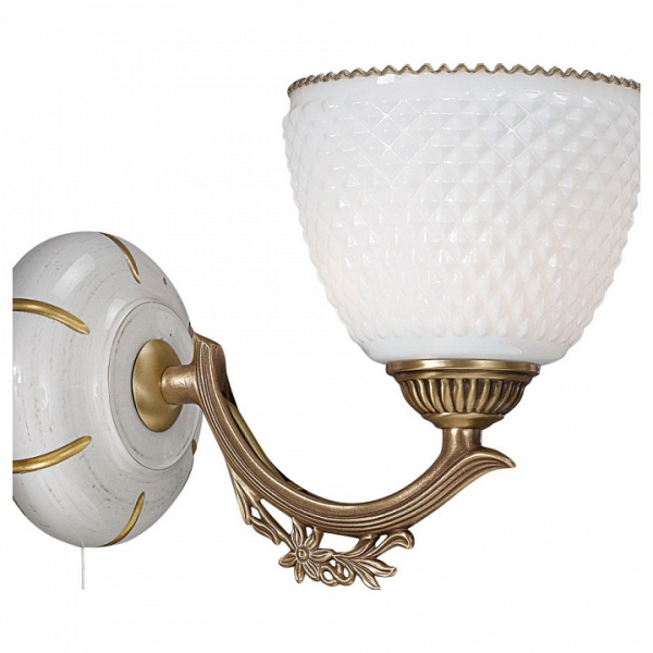 Бра A 8656/1 из коллекции 8656 от итальянской фабрики Reccagni Angelo украсит гостиную, кабинет, спальню в стиле флористика. Материал изделия – дерево, латунь, цвет матовый, рельефный белый, бронза состаренная. Бра имеет 1 плафон из стекла с цоколем E27 общей мощностью 60W. Технические особенности модели: способ крепления светильника на стене – на монтажной пластине, светильник предназначен для использования со скрытой проводкой. Габариты: ширина – 20 см, высота – 20 см, выступ – 26 см.