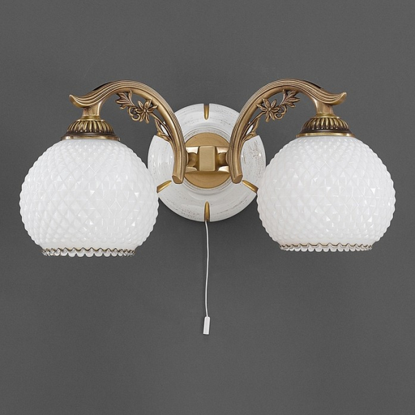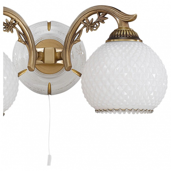 Бра A 8605/2 из коллекции 8605 от итальянской фабрики Reccagni Angelo украсит гостиную, кабинет, спальню в стиле флористика. Материал изделия – дерево, латунь, цвет матовый, рельефный белый, бронза состаренная. Бра имеет 2 плафона из стекла с цоколем 2xE27 общей мощностью 120W. Технические особенности модели: способ крепления светильника на стене – на монтажной пластине, светильник предназначен для использования со скрытой проводкой. Габариты: ширина – 39 см, высота – 17 см, выступ – 22 см.