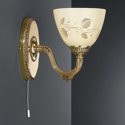 Бра A 6358/1 из коллекции 6358 от итальянской фабрики Reccagni Angelo украсит гостиную, кабинет, спальню в стиле флористика. Материал изделия – латунь, цвет глянцевое золото французское. Бра имеет 1 плафон из стекла с цоколем E27 общей мощностью 60W. Технические особенности модели: способ крепления светильника на стене – на монтажной пластине, светильник предназначен для использования со скрытой проводкой. Габариты: ширина – 20 см, высота – 18 см, выступ – 24 см.