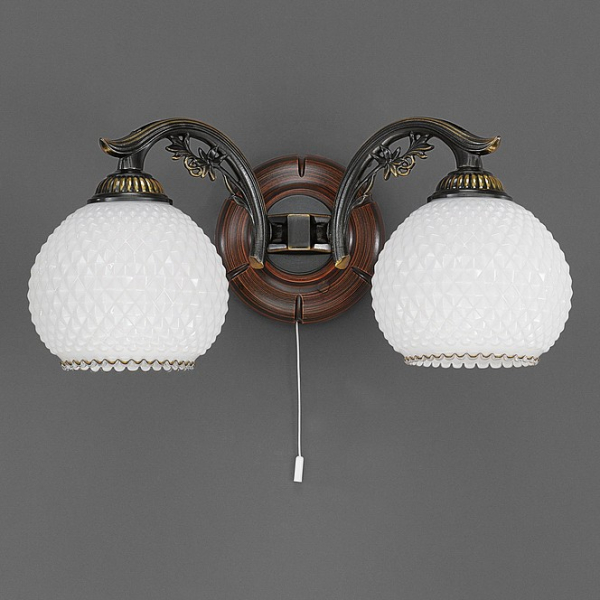 Бра A 8610/2 из коллекции 8610 от итальянской фабрики Reccagni Angelo украсит гостиную, кабинет, спальню в стиле флористика. Материал изделия – дерево, латунь, цвет матовый, рельефный бронза темная, коричневый. Бра имеет 2 плафона из стекла с цоколем 2xE27 общей мощностью 120W. Технические особенности модели: способ крепления светильника на стене – на монтажной пластине, светильник предназначен для использования со скрытой проводкой. Габариты: ширина – 39 см, высота – 17 см, выступ – 22 см.