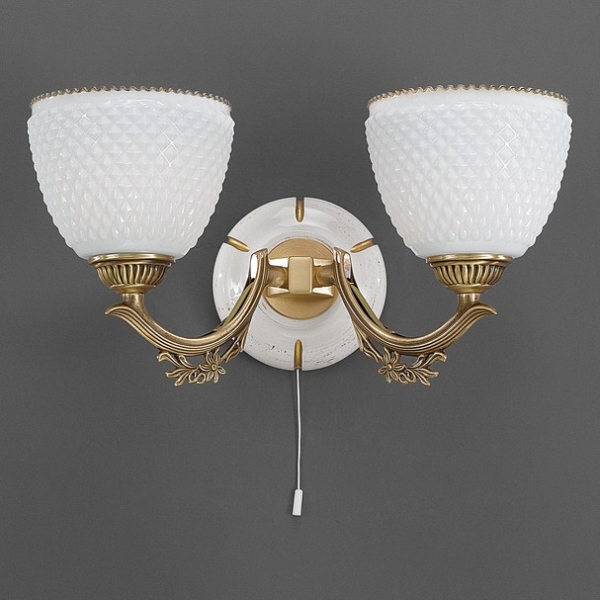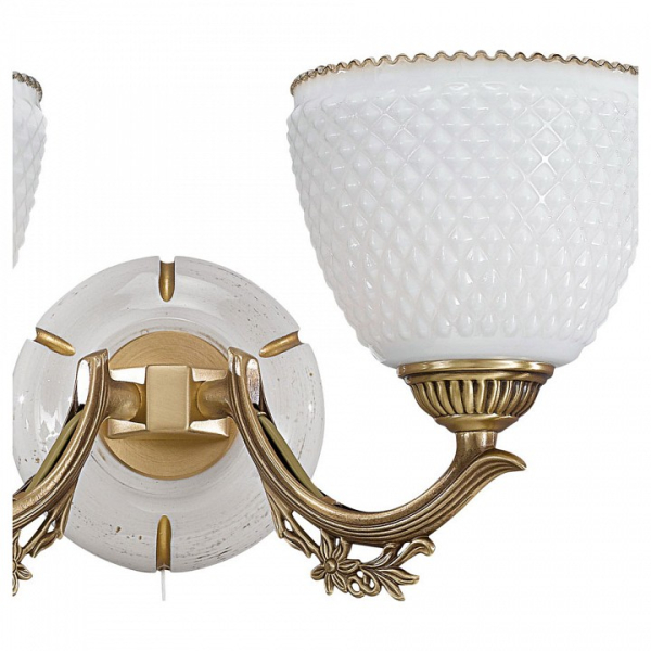 Бра A 8656/2 из коллекции 8656 от итальянской фабрики Reccagni Angelo украсит гостиную, кабинет, спальню в стиле флористика. Материал изделия – дерево, латунь, цвет матовый, рельефный белый, бронза состаренная. Бра имеет 2 плафона из стекла с цоколем 2xE27 общей мощностью 120W. Технические особенности модели: способ крепления светильника на стене – на монтажной пластине, светильник предназначен для использования со скрытой проводкой. Габариты: ширина – 37 см, высота – 20 см, выступ – 22 см.