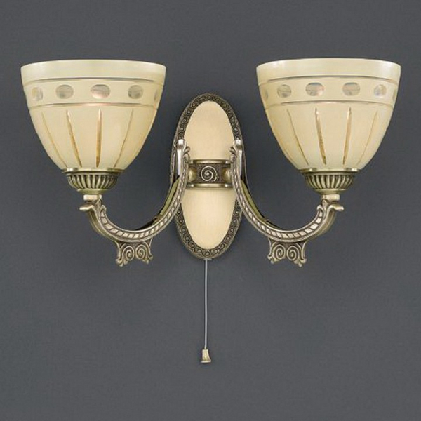 Бра A 7054/2 из коллекции 7054 от итальянской фабрики Reccagni Angelo украсит гостиную, кабинет, спальню в стиле флористика. Материал изделия – латунь, цвет матовая бронза состаренная. Бра имеет 2 плафона из стекла с цоколем 2xE27 общей мощностью 120W. Технические особенности модели: способ крепления светильника на стене – на монтажной пластине, светильник предназначен для использования со скрытой проводкой. Габариты: ширина – 36 см, высота – 18 см, выступ – 24 см.