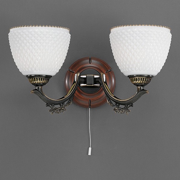 Бра A 8661/2 из коллекции 8661 от итальянской фабрики Reccagni Angelo украсит гостиную, кабинет, спальню в стиле флористика. Материал изделия – дерево, латунь, цвет матовый, рельефный бронза темная, коричневый. Бра имеет 2 плафона из стекла с цоколем 2xE27 общей мощностью 120W. Технические особенности модели: способ крепления светильника на стене – на монтажной пластине, светильник предназначен для использования со скрытой проводкой. Габариты: ширина – 37 см, высота – 20 см, выступ – 22 см.