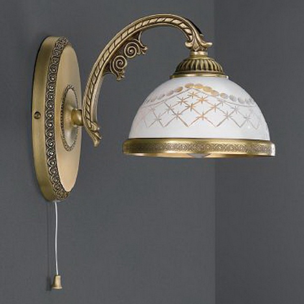 Бра A 7002/1 из коллекции 7002 от итальянской фабрики Reccagni Angelo украсит гостиную, кабинет, спальню в стиле флористика. Материал изделия – латунь, цвет матовый, рельефный бронза состаренная. Бра имеет 1 плафон из стекла с цоколем E27 общей мощностью 60W. Технические особенности модели: способ крепления светильника на стене – на монтажной пластине, светильник предназначен для использования со скрытой проводкой. Габариты: высота – 18 см, выступ – 25 см.