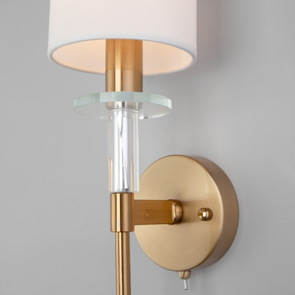 Изделие 60132/1 латунь со встроенным выключателем от российского бренда Eurosvet относится к коллекции Brielle и отлично подойдет для настенной установки спальни, оформленной в стиле модерн. Бра Eurosvet Brielle 60132/1 латунь с цилиндрическими плафонами осветит помещение площадью 1 кв. м. Для устройства рекомендуется использовать лампы накаливания с цоколем E14 и мощностью 40 W. Основными материалами для производства используется текстиль, металл и ткань. Преимущественно представляется в цвете Белый и Латунный.