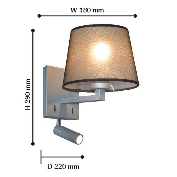 Изделие 2001-2W со встроенным выключателем от немецкого бренда Favourite относится к коллекции Essentia Black и отлично подойдет для настенной установки спальни, оформленной в современном стиле. Бра Favourite Essentia 2001-2W с плафонами-конусами осветит помещение площадью 2.2 кв.м. Для устройства рекомендуется использовать лампы накаливания с цоколем E27 и мощностью 40 W. Основными материалами для производства используется текстиль, металл и органза. Преимущественно представляется в цвете Серый.