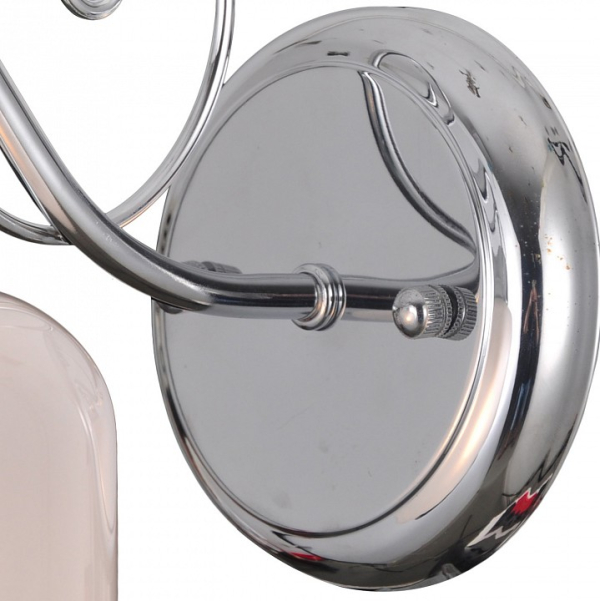 Форма плафона цилиндр круглый, цвет плафона белый с хромированной каймой, цвет арматуры хром. Лампы в комплекте: отсутствуют. Светильник имеет слабую защиту от влаги и пыли — IP20 и предназначен для использования в домашних интерьерах с умеренной влажностью.
