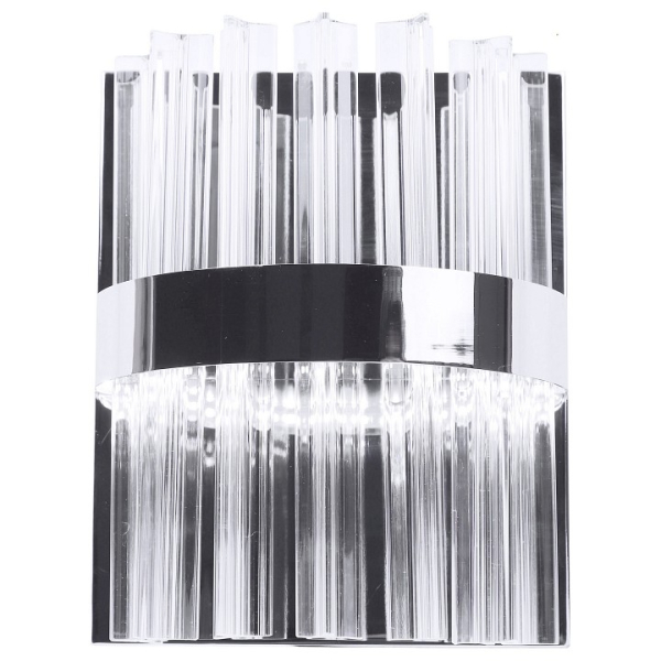 Форма плафона полуцилиндр, цвет плафона прозрачный, цвет арматуры хром. Лампы в комплекте: светодиодная. Светильник имеет слабую защиту от влаги и пыли — IP20 и предназначен для использования в домашних интерьерах с умеренной влажностью.