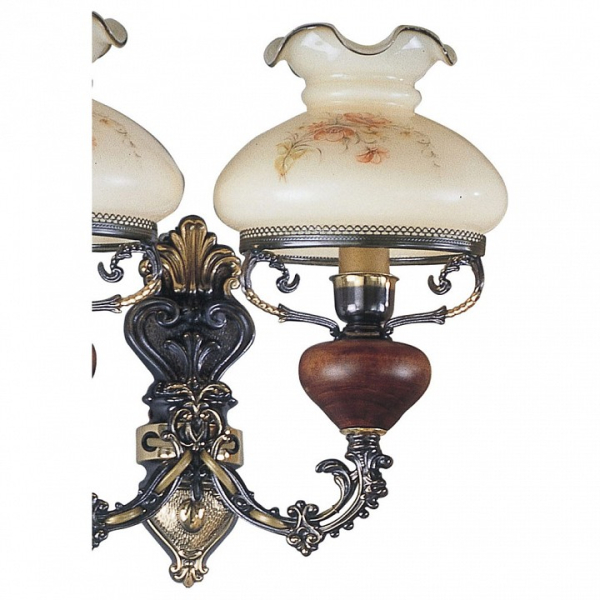 Бра A 636/2 из коллекции 636 от итальянской фабрики Reccagni Angelo украсит гостиную, кабинет, спальню в стиле флористика. Материал изделия – дерево, латунь, цвет матовая бронза темная, коричневый. Бра имеет 2 плафона из стекла с цоколем 2xE14 общей мощностью 120W. Технические особенности модели: способ крепления светильника на стене – на монтажной пластине, светильник предназначен для использования со скрытой проводкой, стиль кантри. Габариты: ширина – 33 см, высота – 32 см, выступ – 17 см.
